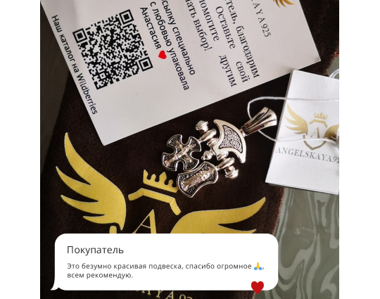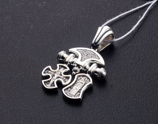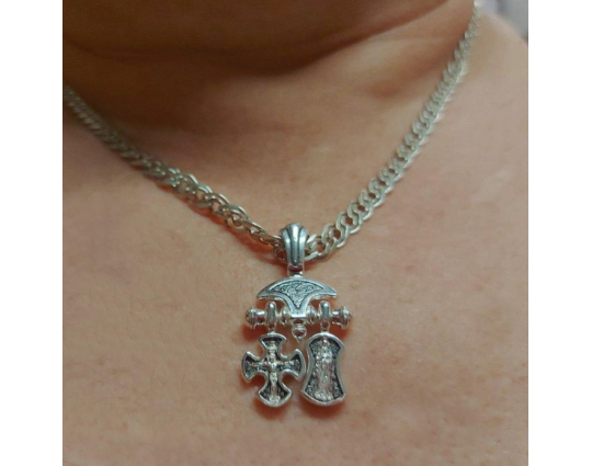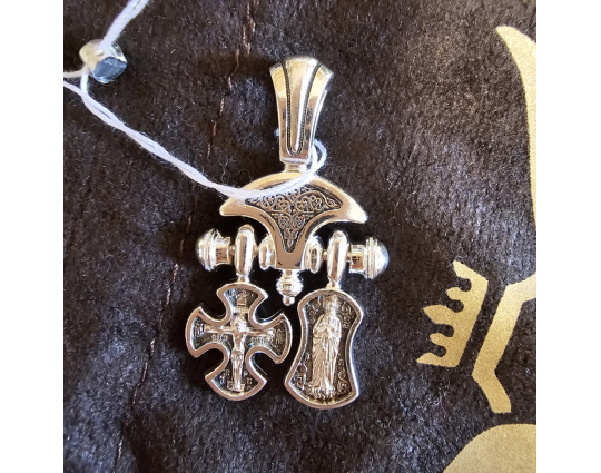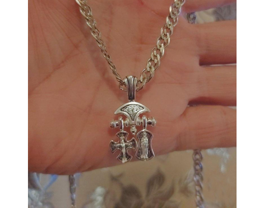 Вторая часть - образок с иконами Валаамской иконы Божией Матери впереди, и Ангела, который охраняет человека, на нательной стороне. Считается, что это защитит от недугов и будет охранять душу человека.