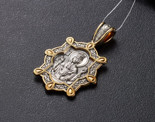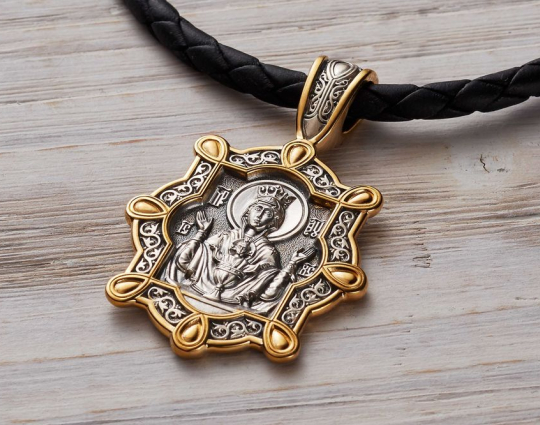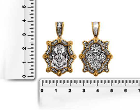 Серебряный образок, в центре которого помещена икона Божией Матери «Неупиваемая Чаша». Знают в православном мире об этой иконе с древних времен. Ей поклоняются православные, которые просят избавления от болезни, под названием пьянство, для себя и своих близких.