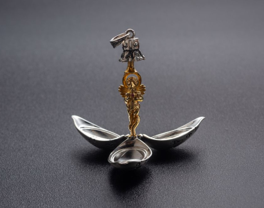 Когда медальон раскрывается, он словно превращается в цветок, в середине которого находится небольшая позолоченная фигурка Ангела. Он наш самый главный помощник во всех делах. Ангел появляется рядом с нами в момент Крещения и сопровождает нас до последнего дня. Сам по себе защитник не может вмешиваться в наши дела. Это происходит только по нашей воле, поэтому своего Ангела Хранителя нужно ежедневно упоминать в утренней или вечерней молитве.