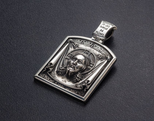 На лицевой стороне этого серебряного изделия изображен Спас Нерукотворный, который имеет огромное значение у православных верующих и по значимости не уступает кресту и распятию. С просьбами о помощи к Спасу Неруктворному обращаются для исцеления от недугов, для укрепления физических и духовных сил, для помощи в принятии решений.