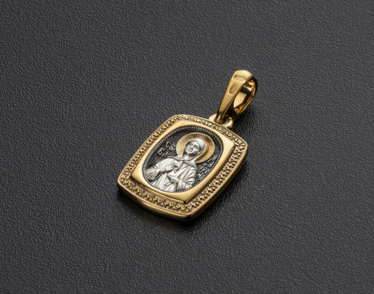 По другой версии, на обретение этого образа повлияла Святая Блаженная Матрона Московская. Её образ размещен на обороте образка из серебра 925 пробы. Матронушка известна своей безграничной любовью к людям, отзывчивостью, мудрыми наставлениями, исцелениями и чудесами, которые случаются даже после её смерти.