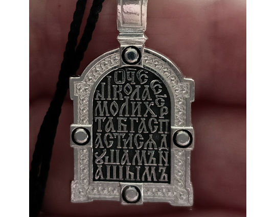 На нательной стороне написана молитва, с которой можно обратиться к Святому - "Отче Николае, моли Христа Бога спастися душам нашим".