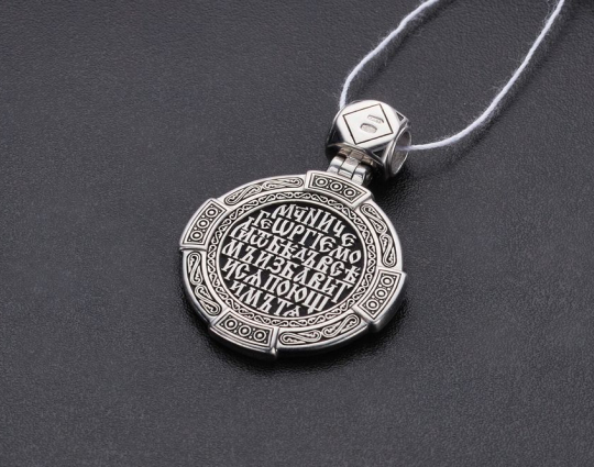 Святой Георгий очень почитается в Христианской Церкви, потому что он защищает воинов и помогает трудящимся. По контуру образок обрамляет изящный узор. На обороте написана молитва, с которой обращаются к этому Святому.