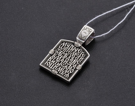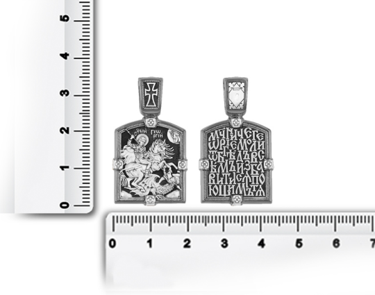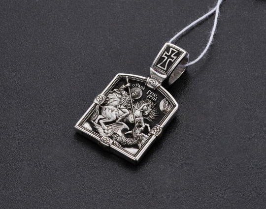 Святой Георгий очень почитается в Христианской Церкви, потому что он защищает воинов и помогает трудящимся. На обороте написана молитва, с которой обращаются к этому Святому.