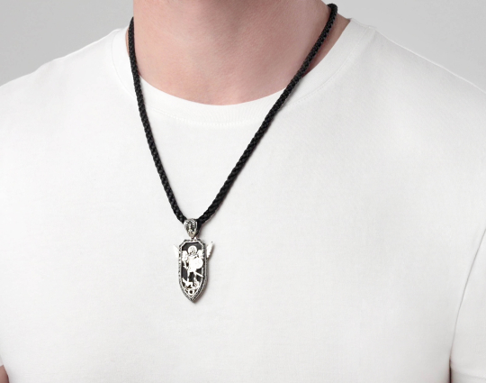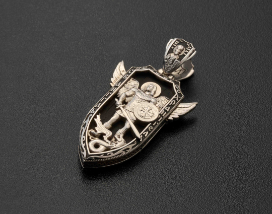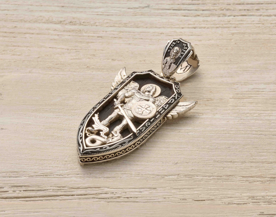 Нательный образок выполнен из серебра с основой из дерева - эбена. Такое сочетание имеет символическое значение, особую