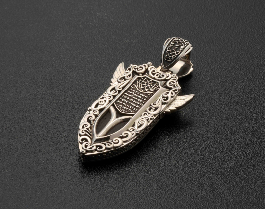 На обратной стороне находятся слова молитвы, на ушке изображен Святитель Николай.