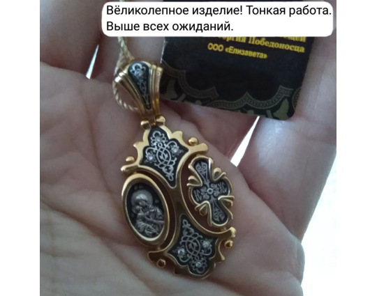 Подвеска: Хризма. Православный крест. Владимирская икона Божией Матери. | 8466 | Серебро 925 пробы с позолотой