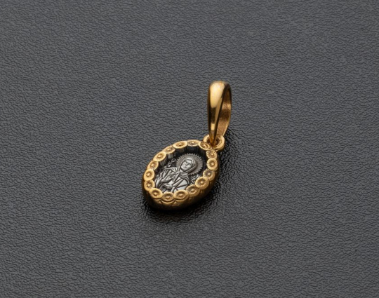 Подвеска-образок выполнена из серебра 925 пробы с позолотой. На нем изображена Блаженная матрона Московская, которую, за её добрый нрав, доброту и бескорыстную отзывчивость называли ласково Матронушкой. Ее чтили за особый дар духовного зрения, за исцеление болезней, за помощь страждущим, мудрые советы и доброту.