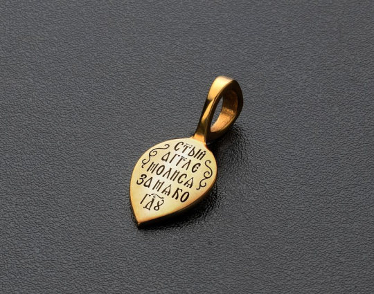 На обратной стороне размещены слова молитвы, обращение к Ангелу с просьбой о помощи и защите - "Святой Ангеле, молися за меня ко Господу".