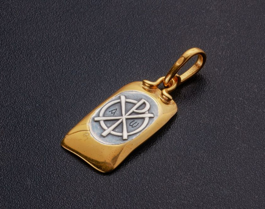 На обратной стороне подвески нарисована Хризма. Это древнейший символ Иисуса Христа.
