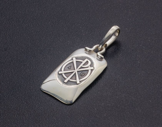 На обратной стороне подвески нарисована Хризма. Это древнейший символ Иисуса Христа.