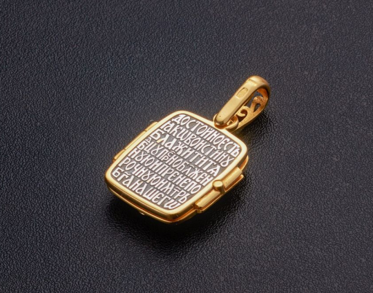 На обратной стороне этого образка молитва, которая написана на серебряном фоне. Контур также позолочен.