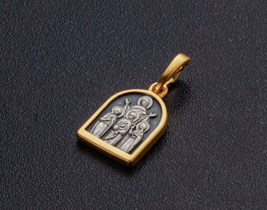 На образке с позолоченным контуром нарисованы три великие святые мученицы Вера, Любовь, Надежда и мать их София.  Все эти четыре образа почитаются в христианской вере и считаются основополагающими для нее. На обратной стороне образка вязью нанесены имена Святых.
