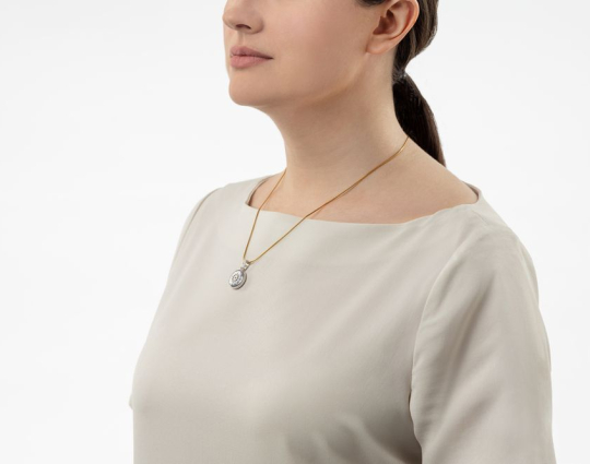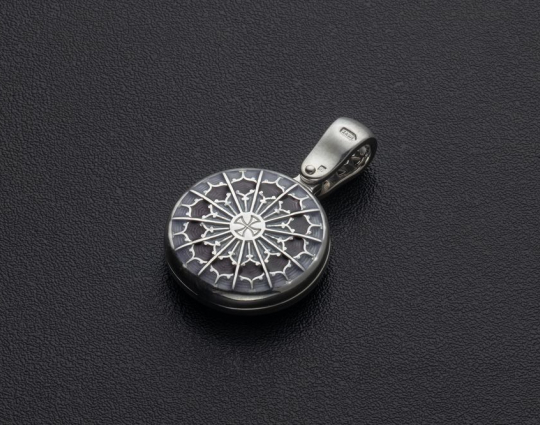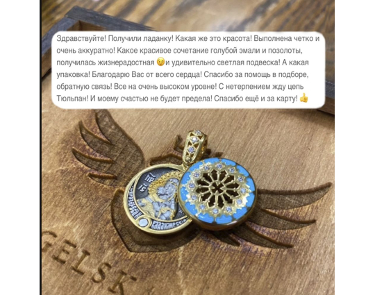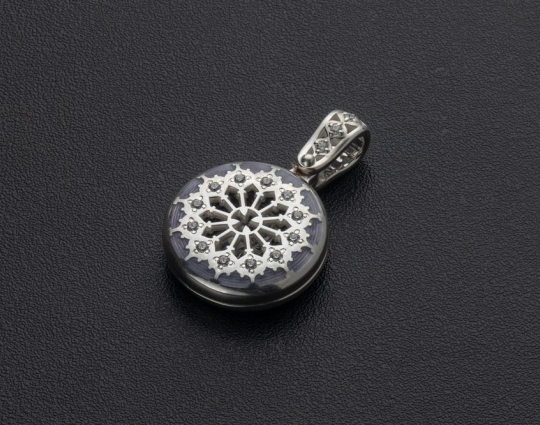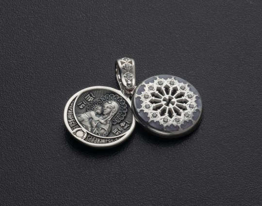 Ладанка выполнена с использованием эмали и фианитов.
