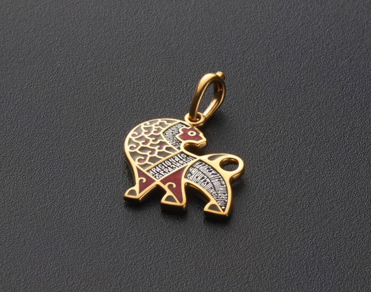 На подвеске, имеющей форму этого благородного зверя, начертаны слова молитвы:«Да воскреснет Бог, и расточаться врази Его, и да бежат от лица Его ненавидящии Его». Эти слова точно так же призваны защитить от всякого зла, как материального, так и духовного.