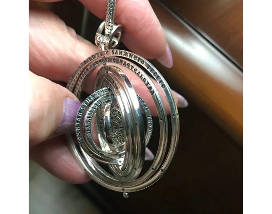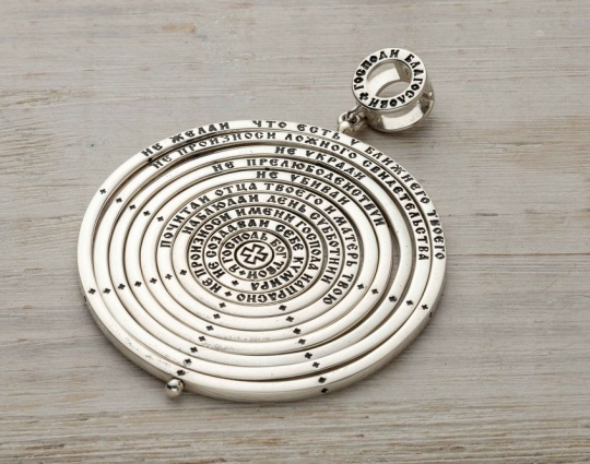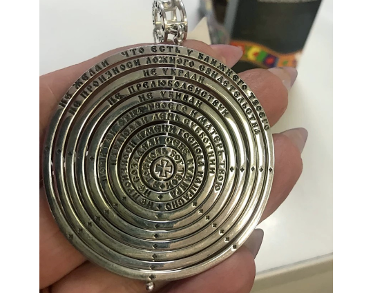 На этой подвеске из серебра 925 пробы на каждом круге размещено по одной заповеди. Это основа христианского вероучения, Закон Божий. Соблюдение их - путь в Царствие Небесное. В комплекте с подвеской идет шнурок длиной до 80 см. Длину можно регулировать с помощью двух узелков.