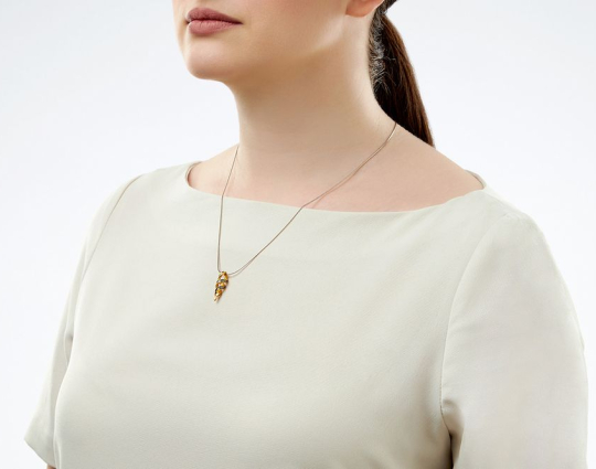 Подвеска выполнена в виде спирали, символизирующей бесконечность, а так же всеобъемлющее влияние веры, всепроникающую силу Бога.