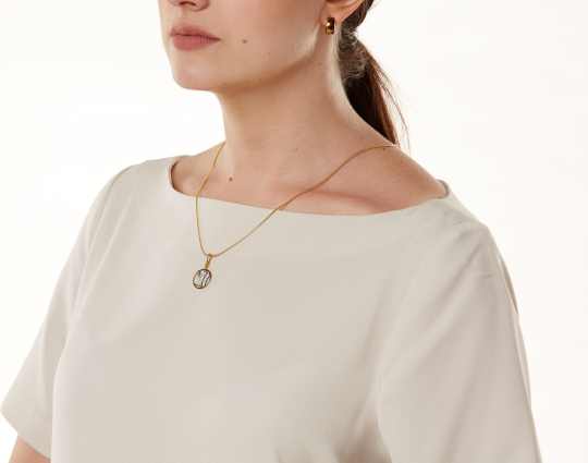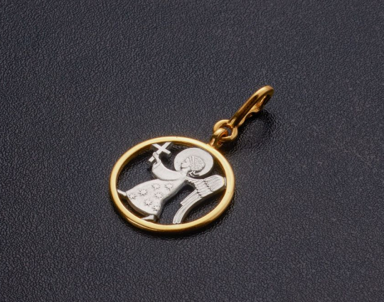Необычная подвеска с позолоченным контуром и фигуркой Ангела-Хранителя, который держит в руках крест, внутри. В православной церкви с древних времен Ангел считается защитником человека. Ангел приходит к каждому во время Крещения и охраняет его, спасает от необдуманных поступков, освещает путь.