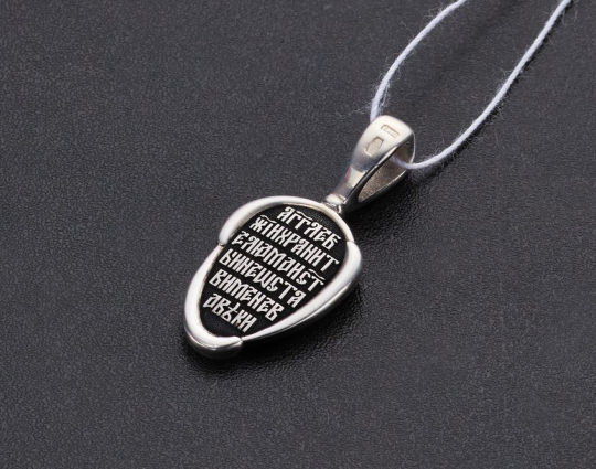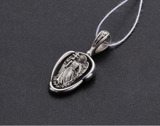 Изящная подвеска с фигуркой Ангела-Хранителя, держащей крест и меч. Считается, что так Ангел охраняет человека от нападений физического и духовного плана. На обратной стороне написаны слова, с которыми Ангела просят о помощи.