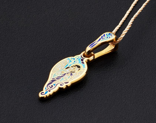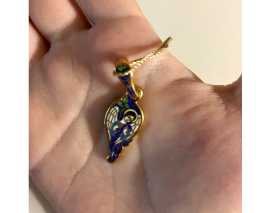 Серебряный образок с изображением Ангела-Хранителя, окантованный эмалевой росписью по позолоте.