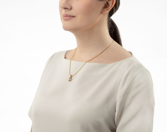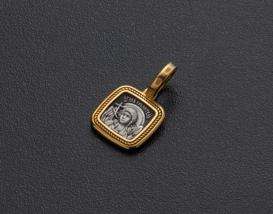 На лицевой части этого серебряного образка с позолотой изображен Николай Чудотворец. Образ Николая Чудотворца почитается в православной церкви, потому что он постоянно исцелял больных, помогал нуждающимся в сложных ситуациях, спасал путешественников от природных невзгод.