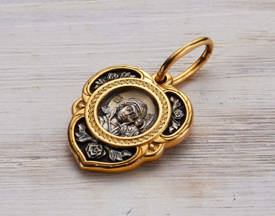 Казанская икона Божией Матери. Хризма | 102_238pz | Серебро 925 пробы с позолотой