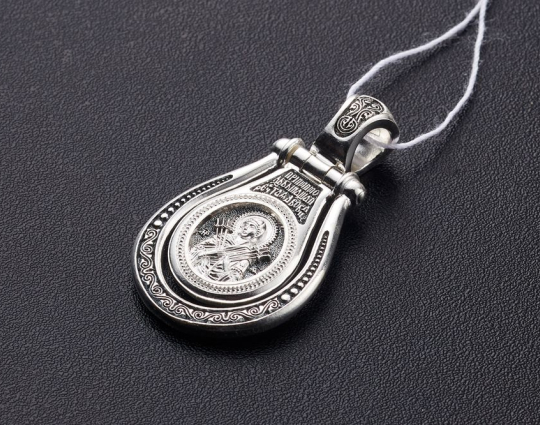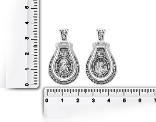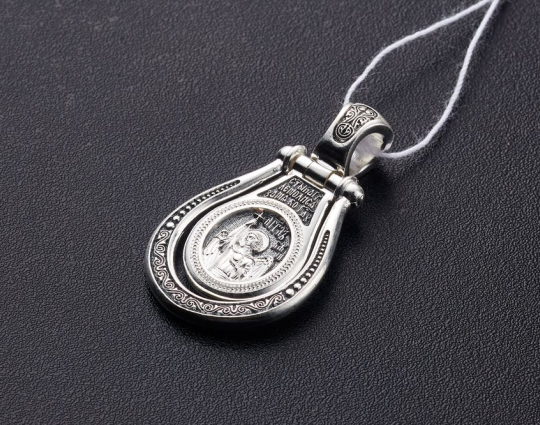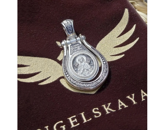Этот серебряный образок с иконой Богоматерью на лицевой части и Ангелом-Хранителем на обратной стороне. Богоматерь изображена с сердцем, проткнутым семью мечами. Это символизирует боль и горе Богородицы в земной жизни, поэтому верующие просят перед этим образом избавления от недобрых мыслей, от осуждения ближних, умягчения сердца своего и защиты от злых людей. Над Богородицей написана молитва.