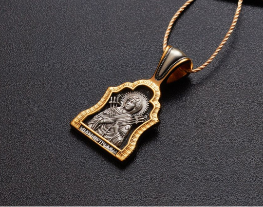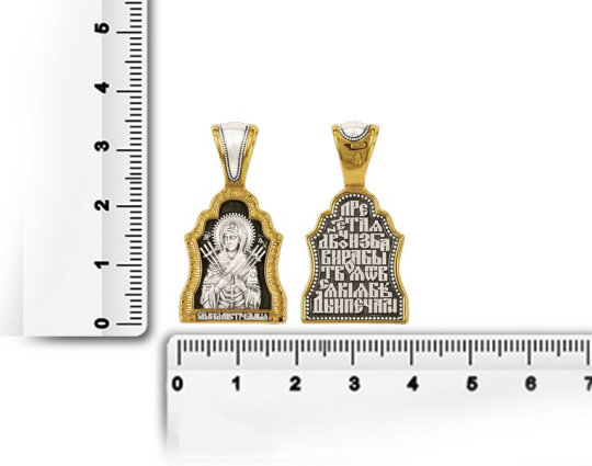 Икона Божией Матери Умягчение злых сердец (Семистрельная). Образок. | 8507 | Серебро 925 пробы с позолотой