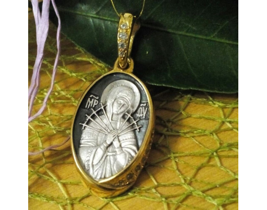 Образ Божией Матери «Семистрельная» | 583_pz | Серебро 925 пробы с позолотой