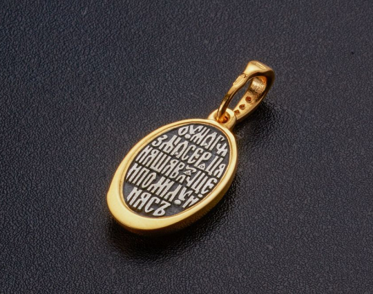 Небольшой, овальный образок с позолоченной канвой и петелькой, которые украшены фианитами (11 штук). На образке изображена икона Богоматери Семистрельной на лицевой части и написаны слова, с которыми к ней обращаются, на обратной стороне. Богоматерь изображена с сердцем, проткнутым семью мечами. Это символизирует боль и горе Богородицы в земной жизни, поэтому верующие просят перед этим образом избавления от недобрых мыслей, вспышек собственного и чужого гнева, нетерпимости и любого вида вражды.