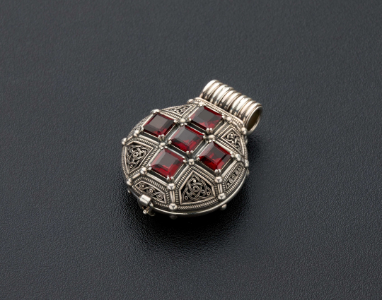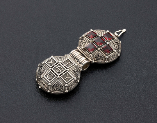 Складень «Ставротека» из серебра | 104_5005_granat | Серебро 925 пробы