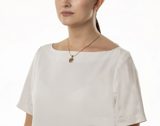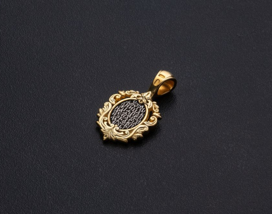 Растительный узор по контуру украшения покрыт позолотой, что придает подвеске изящности и яркости.