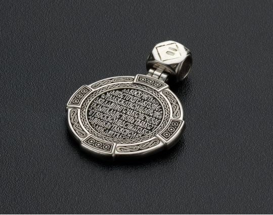 На нательную сторону нанесены слова, с которыми обращаются к Богу в опасности и носят при себе во избежание неприятностей.