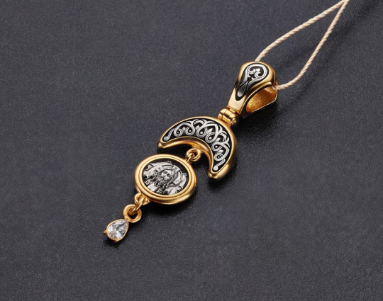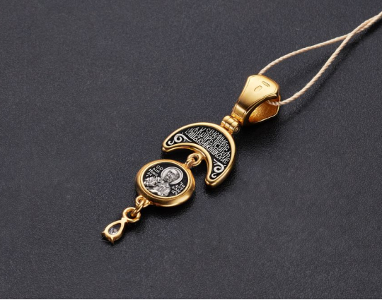 Икона "Спас Нерукотворный", которая изображена на лицевой части этого серебряного образка с позолотой, самая почитаемая икона всеми православными верующими.