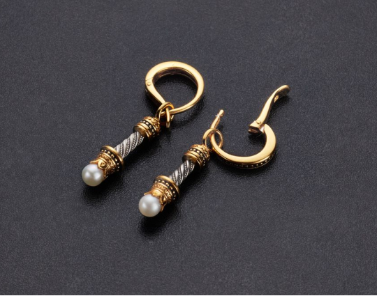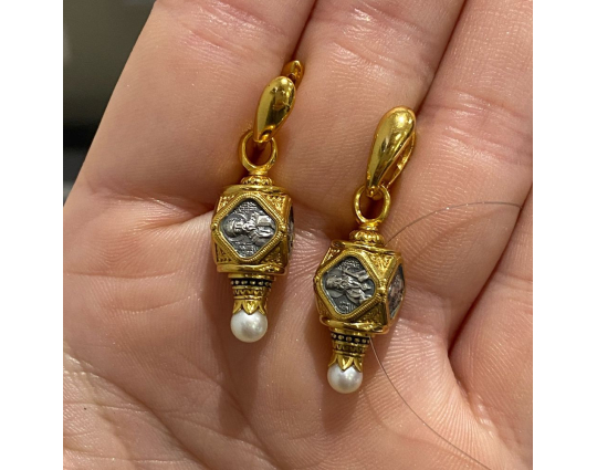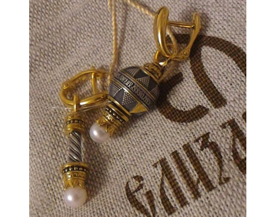 Серебряные серьги с  белым жемчугом и позолоченными элементами. Конструкция сережек позволяет их носить как отдельное ювелирное изделие, так и дополнять любыми бусинами из нашего магазина, получая, таким образом, каждый раз новое украшение.