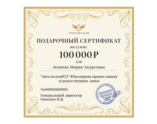 Подарочный сертификат на сумму 100000 рублей | sertificat100000 |