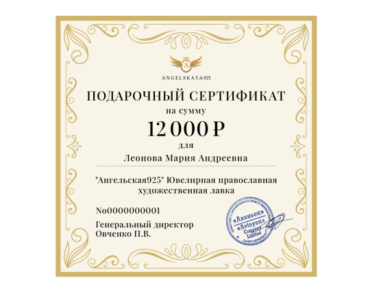 Подарочный сертификат на сумму 12000 рублей