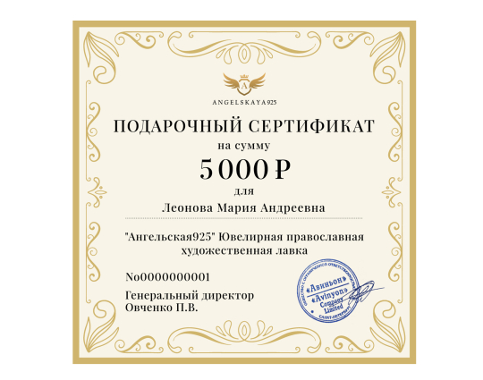 Подарочный сертификат на сумму 5000 рублей