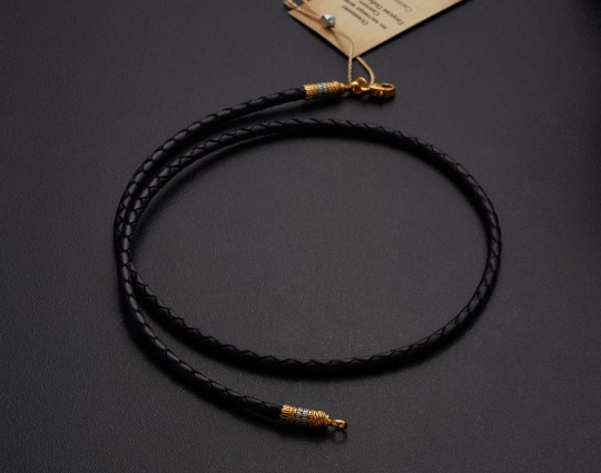 Кожаный плетеный шнурок ручной работы, который отличается особой прочностью, потому что при плетении в него вставляют тонкую, незаметную, но очень прочную капроновую нить. Такие шнурки не растягиваются и не деформируются.