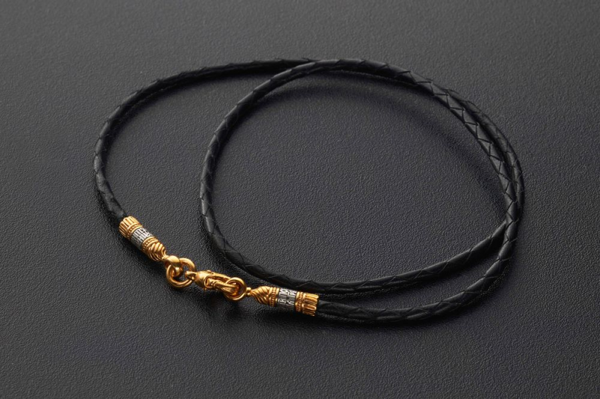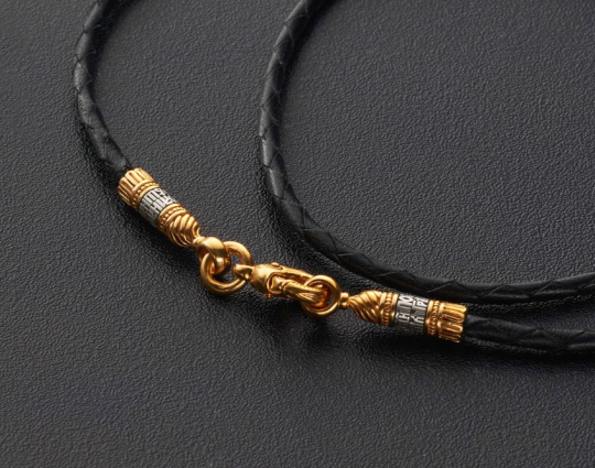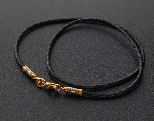 Кожаный шнурок, плетеный вручную | 9001 | Серебро 925 пробы с позолотой