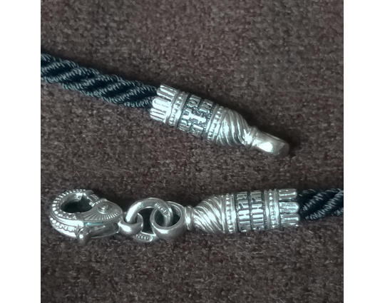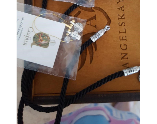 На его концах - специальные серебряные  зажимы в форме куполов. На них написаны слова – обращения к Богу. Замком служит карабин.