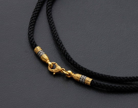 На его концах - специальные серебряные с позолотой концевики со словами: «Господи, помилуй мя грешного». Соединяет концевики замочек-карабин в форме рыбки.