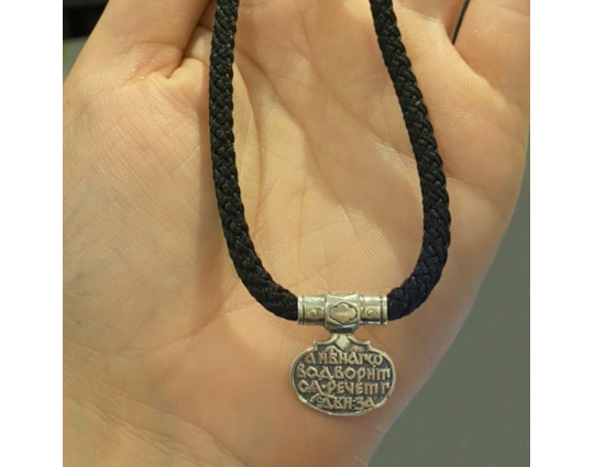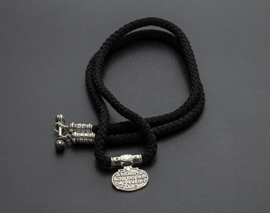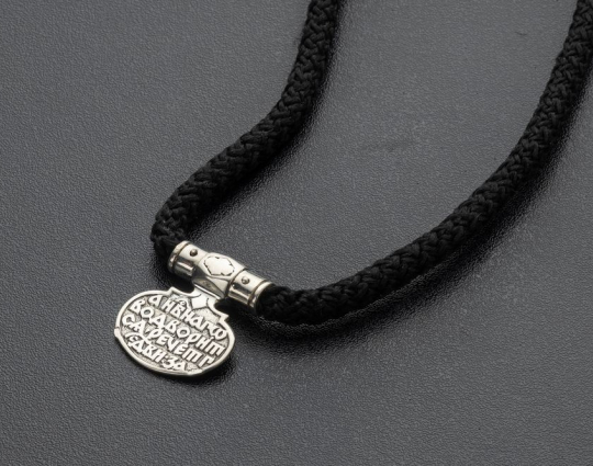 К гайтану прикреплена подвеска из серебра со словами первых строк из Псалма 90 «Живый в помощи Вышняго». Его читают в трудные минуты для защиты и помощи.