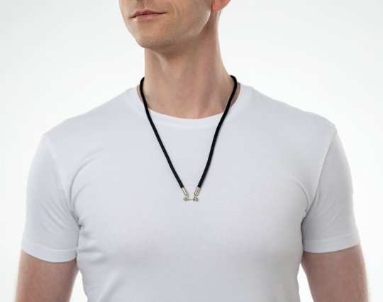 Шёлковый шнурок с концевиками цилиндрической формы и подвеской из серебра 925 пробы.  Гайтаны довольны комфортны при надевании и ношении изделий.