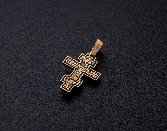 На обороте крестика из красного золота помещен текст молитвы.