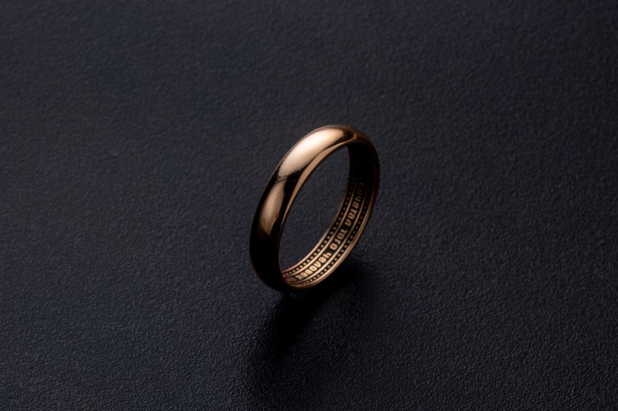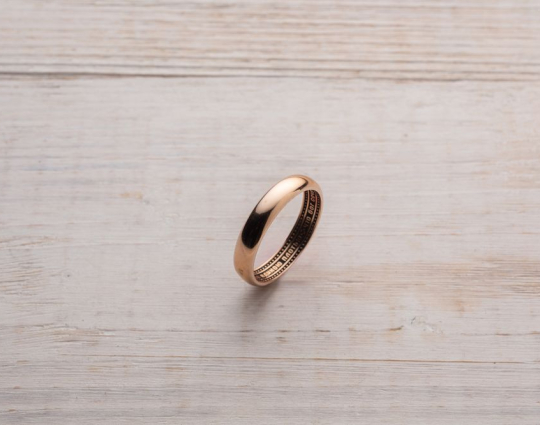Венчальное кольцо из золота 585 пробы со словами на внутренней стороне "Что Бог сочетал, того человек да не разлучает. И будут два единою плотью".